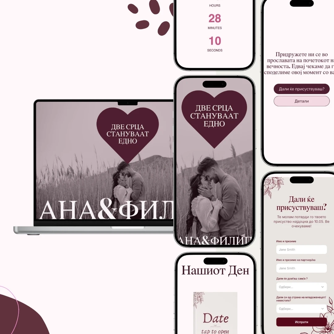 Денес изработувам персонализирани веб-покани, внимателно дизајнирани да го отсликаат стилот и приказната на секој клиент.
